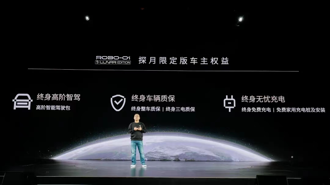 当晚,创立605天的集度发布其首款车型——ROBO-01探月限定版,这款百公里加速3.9秒,最高续航超600公里,采用高通8295座舱芯片、双英伟达Orin X芯片,百度Apollo智能驾驶算法驾驶,城市、高速、泊车全域融通的大五座智能电动 SUV售价39.98 万元。