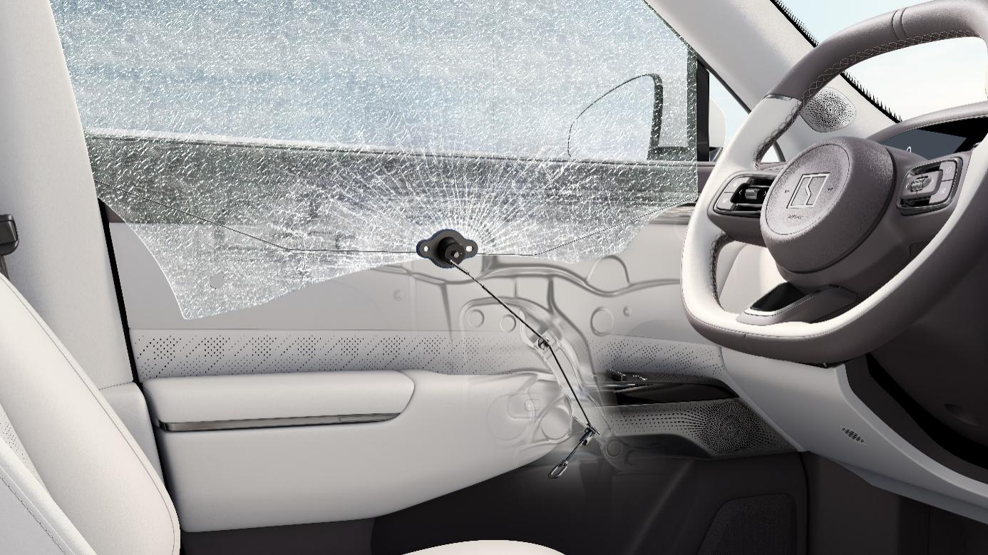 在车窗设计上,焕新极氪7X采用了特殊的三层结构:外层为3.5毫米钢化玻璃,中间层为0.76毫米PVB胶膜,内层为1.1毫米钢化玻璃。该结构通过表层压应力与内部张应力形成力学平衡,在主驾安全破窗器启动时,玻璃可被有效击穿。