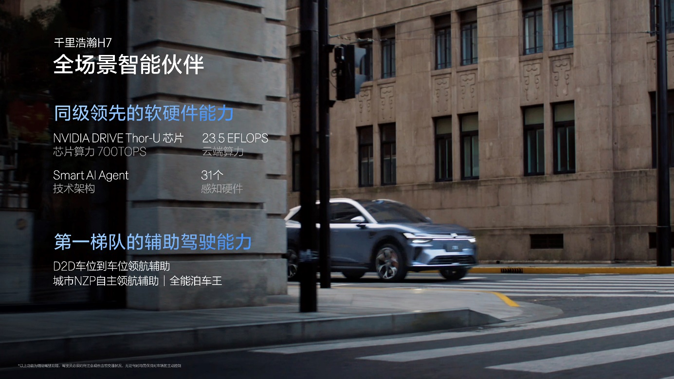 焕新极氪7X在智能驾驶方面全系标配算力为700 TOPS的Thor-U芯片、激光雷达以及千里浩瀚辅助驾驶系统H7。该系统基于Smart AI Agent技术架构,整合了D2D车位到车位领航辅助与NZP城市自主领航辅助等功能。此外,全车新增6个辅助驾驶小蓝灯,带来更强科技感。