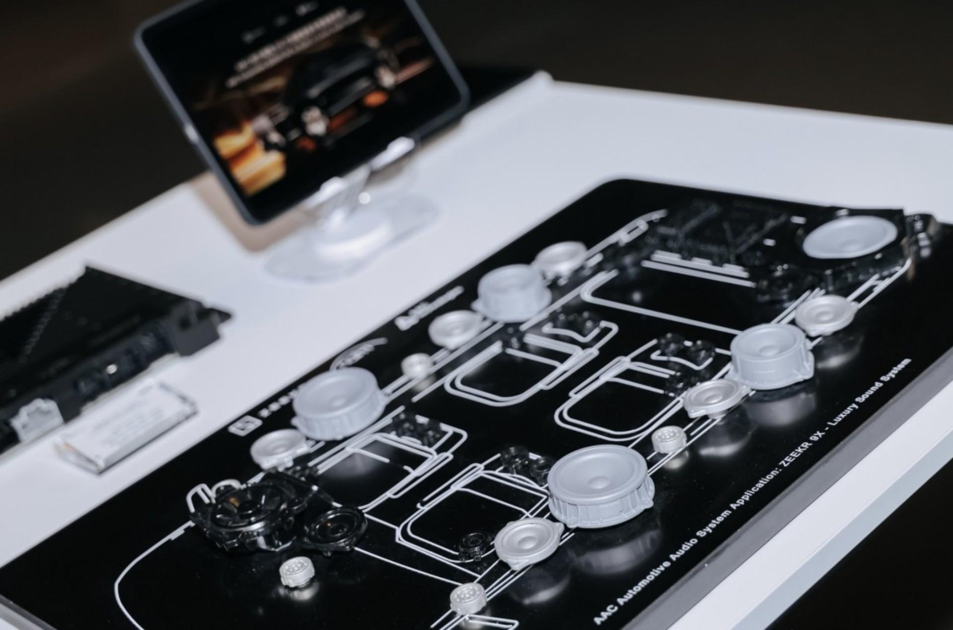瑞声科技携手英国国宝级音响品牌Naim与极氪,共同打造了拥有40独立通道、32个扬声器、8个座椅振子的“Naim殿堂之声音响系统”,呈现出行业领先的沉浸式9.2.4.8多维声场,被业界誉为“移动的百万级听音室”。